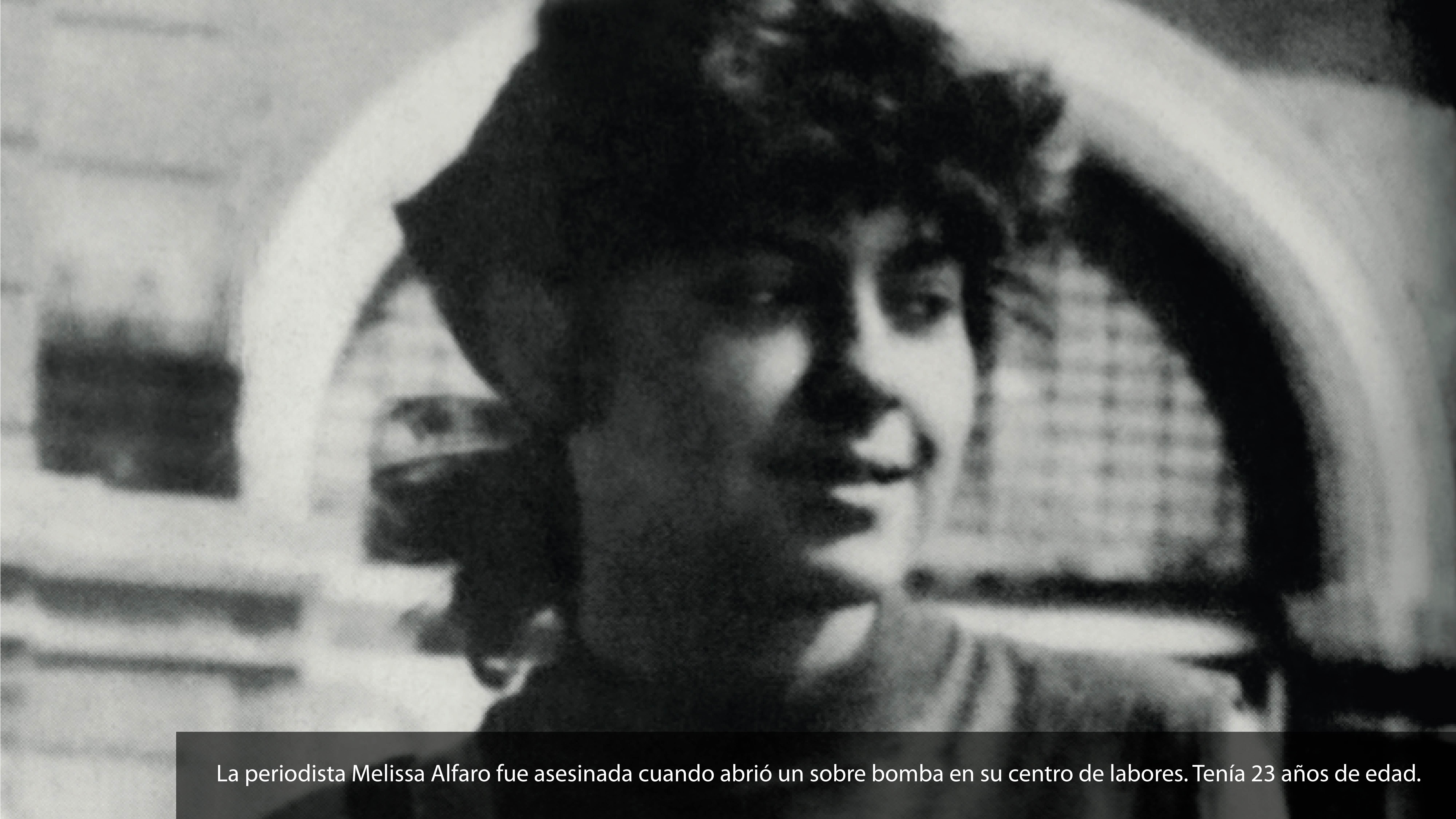 El LUM dignifica la memoria de Ruth Melissa Alfaro Méndez, periodista y jefa de Informaciones del semanario ‘Cambio’, quien el 10 de octubre de 1991, en su centro de labores recibió un sobre que contenía un explosivo, detonó al ser abierto y le arrebató la vida. Melissa tenía 23 años de edad.